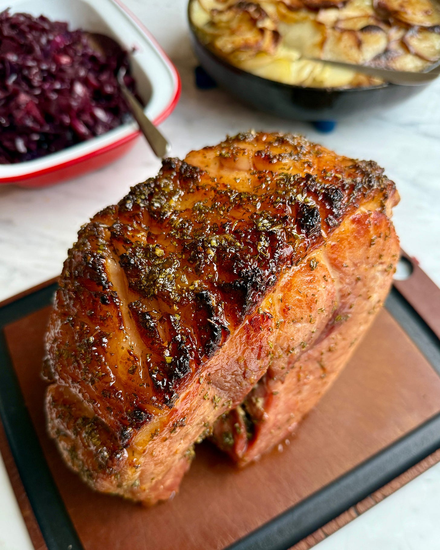 My favourite meal of the Festive season is glazed ham, served with braised red cabbage and Boulangere potatoes. It follows that, to my mind at least, the most useful recipe post of the last two years of this Rocket & Squash newsletter provides the method and more for all of those things.